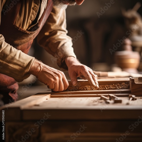 Craftsman's Precision: Close-Up of Cabinet-Maker Skillfully Working with Wood