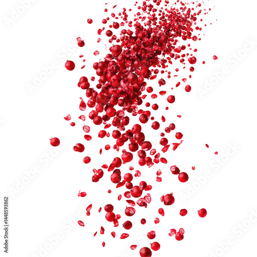 Cranberries Dropping Mid Air isolated on a transparent background