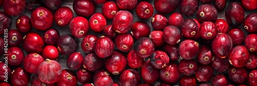 Cranberries texture background, Vaccinium macrocarpon fruits pattern, Oxycoccus macrocarpus mockup