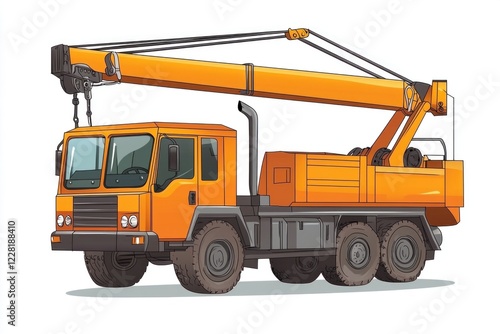 Crane Truck isolated on white background. Heavy Machinery. Construction Vehicle. Mobile Crane. Truck with Crane Arm. Crane Truck Design Element. Realistic Crane Truck isolated for Designers.