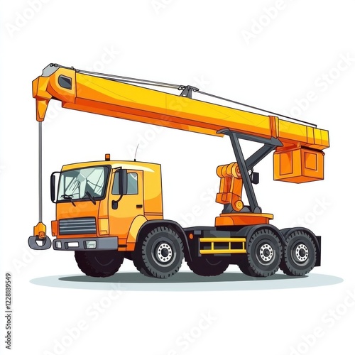 Crane Truck isolated on white background. Heavy Machinery. Construction Vehicle. Mobile Crane. Truck with Crane Arm. Crane Truck Design Element. Realistic Crane Truck isolated for Designers.
