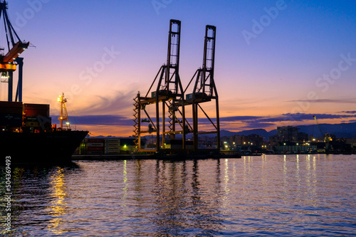 Cranes in Harbor during Sunset