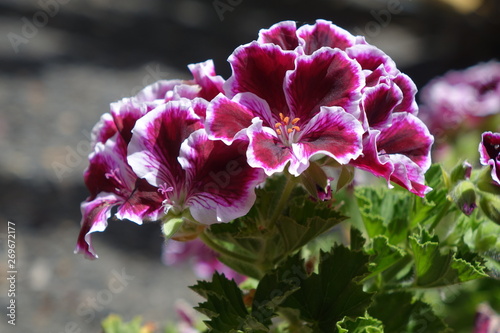 Cranesbill geranium flowers in full bloom taken in bright sunshine in Corralejo fuerteventura in the Canary Islands Spain
