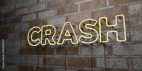 CRASH - Glowing Neon Sign on stonework wall - 3D rendered royalty free stock illustration. Can be used for online banner ads and direct mailers..