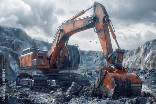 Crawler Excavator is digging with lift up in the construction site. Neural network ai generated