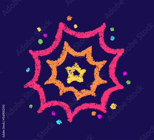 Crayon doodle firework symbol. Hand drawn firework pencil sketch. Chalk color magic sparkle. Crayon texture burst. Vector illustration on white background.