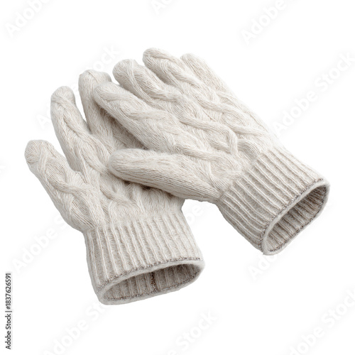 Cream Cable Knit Gloves Isolated on White