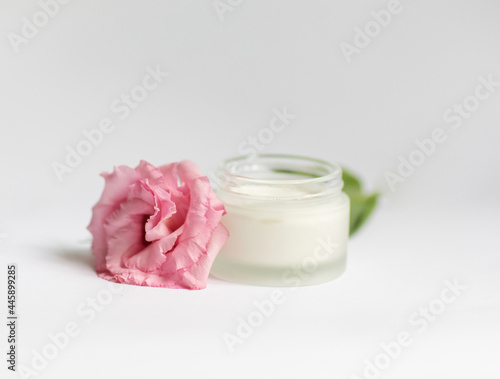Cream in a jar on a white background