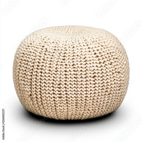 Cream Knitted Pouf Cozy Round Ottoman for Home Decor, Generative AI.