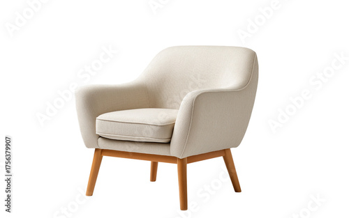 Cream Upholstered Armchair with Wooden Legs isolated on a transparent background