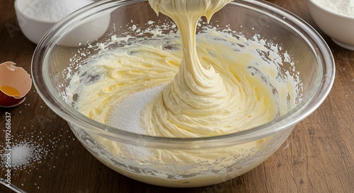 Creamy Butter and Sugar Mixture in Glass Bowl