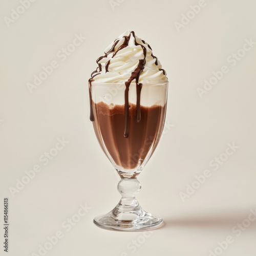 Creamy chocolate milkshake in a glass. Featuring whipped cream and chocolate syrup