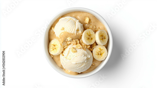 Creamy dessert with peanut butter, banana, and vanilla ice cream