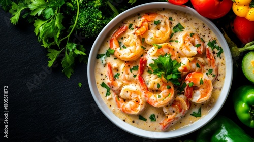 Creamy Garlic Shrimp Pasta with Fresh Vegetables and Herbs