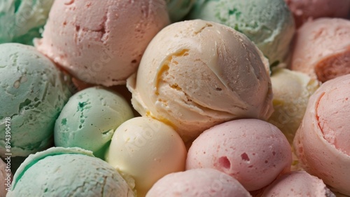 Creamy gelato surface with a soft, smooth texture in shades of pink, mint, and vanilla