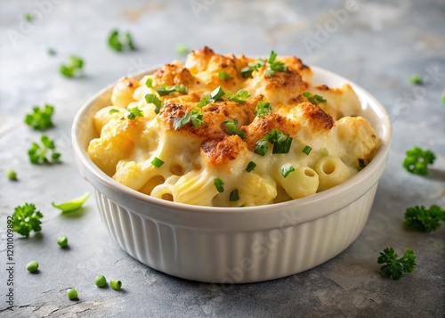 Creamy Gourmet Baked Mac & Cheese with Hidden Cauliflower - Minimalist Food Photography