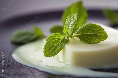 Creamy Panna Cotta Dessert with Fresh Mint Leaves