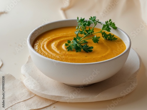 Creamy Pumpkin Soup with Fresh Herb Garnish.