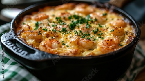 Creamy Shrimp Bake in a Cast Iron Skillet A delectable seafood casserole recipe