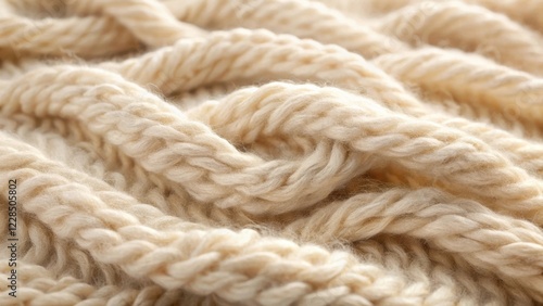 Creamy, Soft, Textured Knit Fabric A Detailed Close-Up View of Cozy Yarn