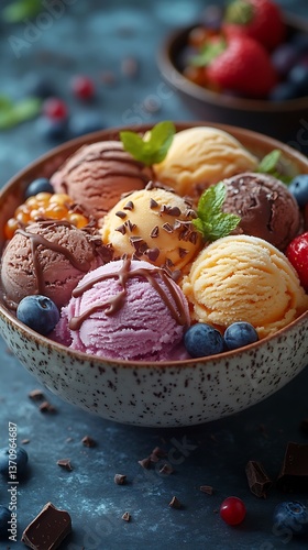 Creamy vanilla and chocolate ice cream dessert high resolution picture