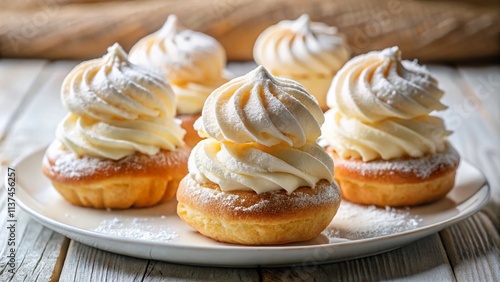 Creamy Vanilla Cream Puffs: Delicious Pastry Recipe, Whipped Cream Dessert, Homemade Sweet Treat, Food Photography