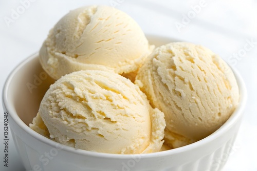 Creamy Vanilla Ice Cream Scoops in a White Bowl Delicious Summer Treat