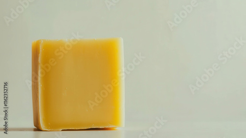 Creamy Yellow Cheese Block Resting on Light Surface with Soft Shadows