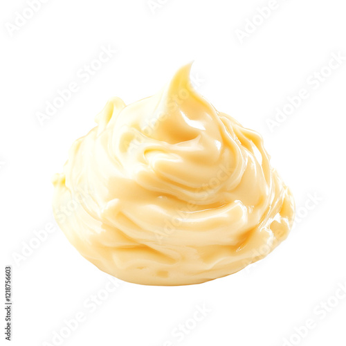 Creamy yellow dollop of mayonnaise isolated on black background,
