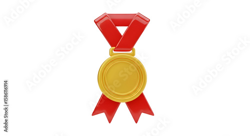 Create a Gold Medal with Red Ribbon, Transparent Background