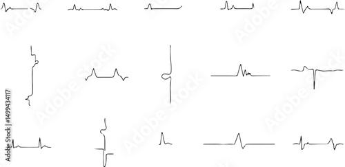 Create a kinds of Heart beat monitor pulse line art icon for medical apps and websites vector art with white background.