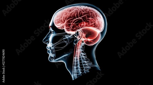 create a modern medical illustration/diagram of a profile of a head with nasal cavity Over black Studio Background.