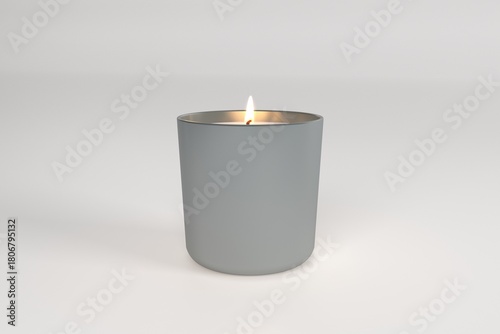 Create a relaxing mood with a single lit candle in a modern gray holder for a cozy ambiance