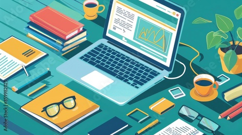 Create a scene of students attending online classes from home with laptops and notebooks while teachers provide lessons and guidance through video calls.