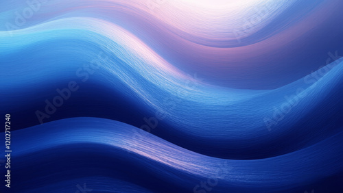 Create a serene abstract background with glowing, fluid waves in deep blue, muted blue, and lavender tones.