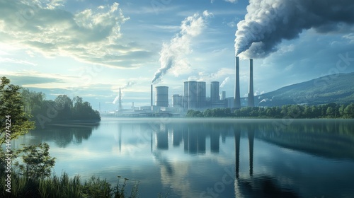 Create a visually compelling and informative image depicting the monitoring of thermal pollution in industrial waters