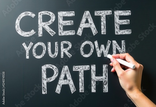 Create Your Own Path: Person Writing Inspiring Words on a Blackboard with White Chalk Motivational quotes best for wall art or print