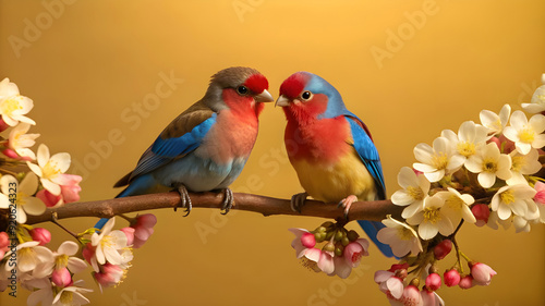 create-an illustration of a serene garden love birds scene
