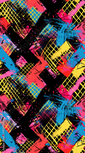 Creating a modern abstract seamless pattern with colorful brushstrokes and geometric shapes, bursting with energy and vibrancy