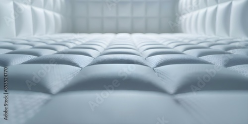 Creating a serene and quiet atmosphere in a white soundproof room with padding. Concept Quiet Atmosphere, Serene Setting, White Room, Soundproof Padding
