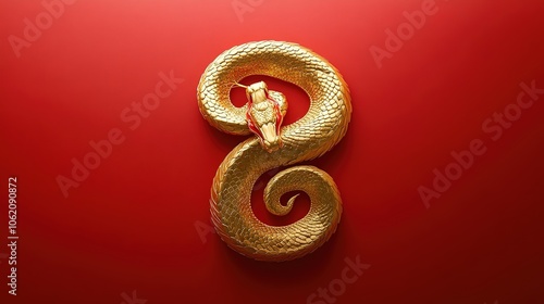 Creative Abstract Marketing Background Featuring a Red Base with a Golden Snake Design, Embodying the Festive Spirit of the Chinese New Year. This Elegant and Detailed Gold Foil Relief Pattern Represe