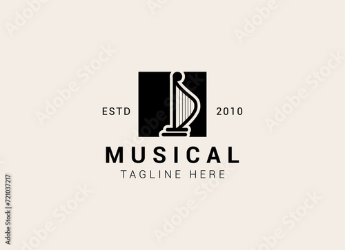 Creative and simple musical instrument logo. Harp logo design vector illustration