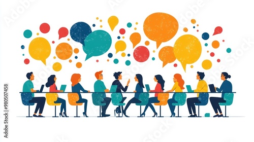 Creative Business Brainstorming Session with Diverse Team Members in Flat Illustration Style with Copy Space