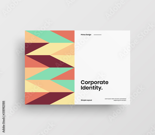 Creative business presentation vector A4 horizontal orientation front page mock up. Modern corporate report cover abstract geometric illustration design layout. Company identity brochure template.