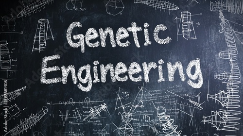 Creative chalkboard illustration highlighting genetic engineering concepts and diagrams.