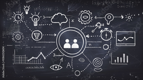 Creative chalkboard illustration with business workflow and strategy concepts