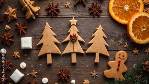 Creative Christmas Craft: Handmade Card with Natural Recyclable Materials and Wooden Background – Nature-Inspired Holiday Project for DIY Enthusiasts