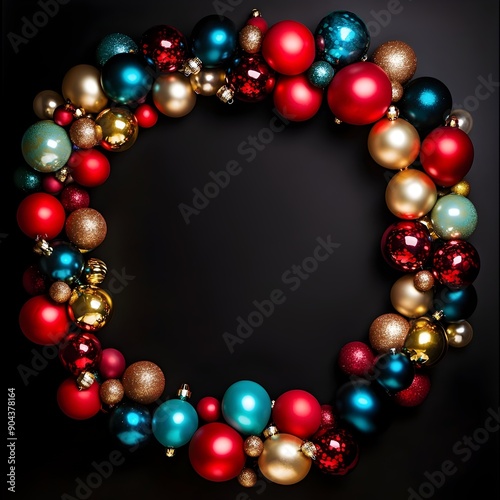 Creative Christmas Frame with Festive Party Balloons on Black Background