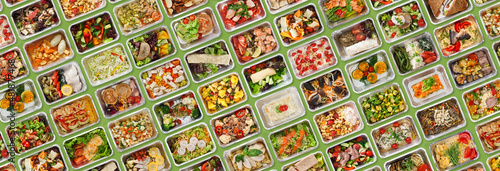 Creative Collage For Food Delivery Concept With Prepared Meals In Foil Containers