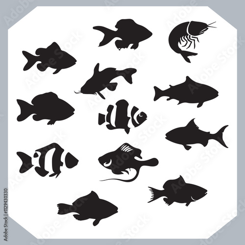 Creative Collection of Fish Silhouette Logotype Icons for Modern and Elegant Logo Design in white background
